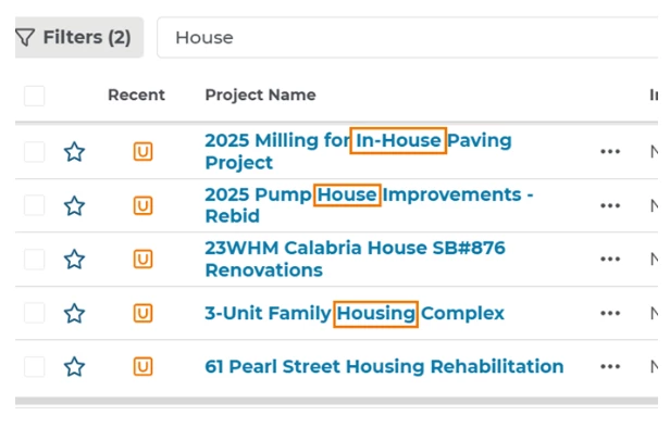 As a Project Intelligence Starter user, you now have access to Modernized Search, which helps you find project and company information faster and more easily. With simple keyword search and helpful filters, getting the info you need takes less time and effort.